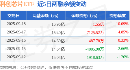 证券之星音讯,9月18日,科创芯片ETF(588200)融资买入5.74亿元,融资归还4.22亿元,融资净买入1.53亿元,融资余额16.88亿元,当日融资净买入排名第36,近3个交易日已接连净买入累计2.28亿元。